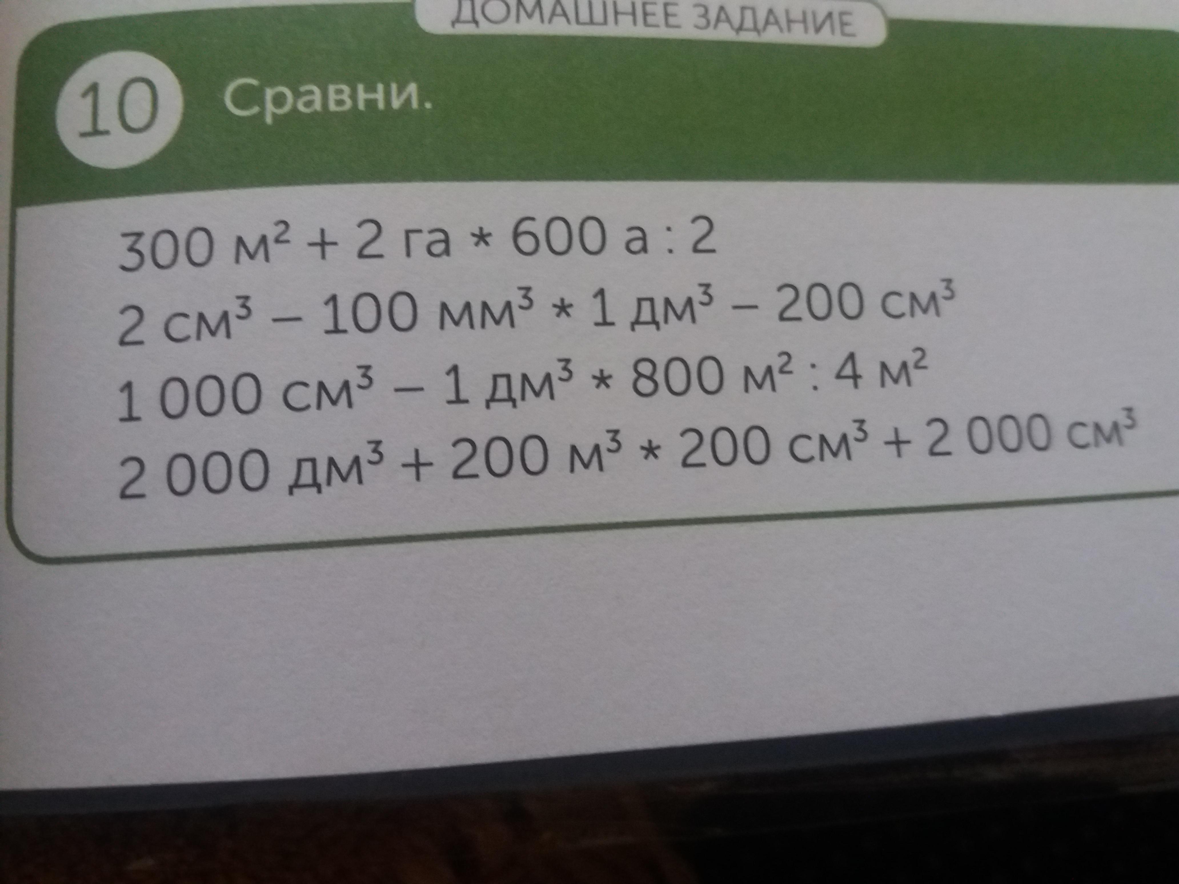 3) 1000 см3 - 1 дм3 > 800 м2 : 4 м2