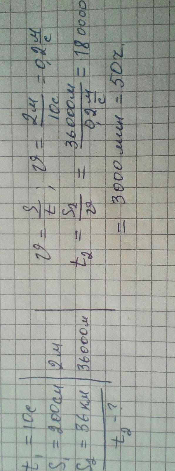 Двигаясь равномерно прямолинейно, тело за 10 с прошло 200 см. За сколько часов это тело, двигаясь с той же скоростью и в том же направлении, пройдет путь 36 км?