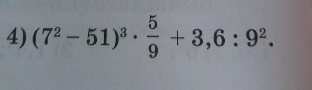 (7^2 -51)^3 ×5/9 +3,6÷9^2=(49-51)^3 ×5/9 +36/10 ×1/9^2=-8×5/9 +4/90=-40×5/45 +2/45=(-200+2)/45=-198/45=-22/5=-4,4