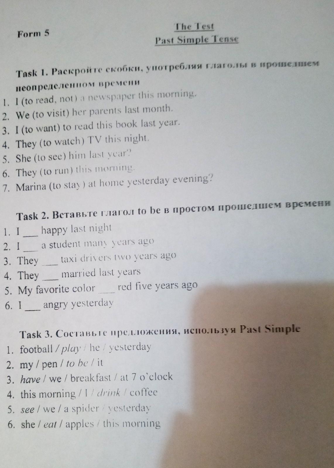 1. He played football yesterday