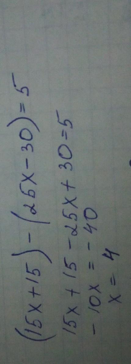 Найдите значение x, при которых значение выражения 25x - 30 на 5 меньше от значения выражения 15x +15