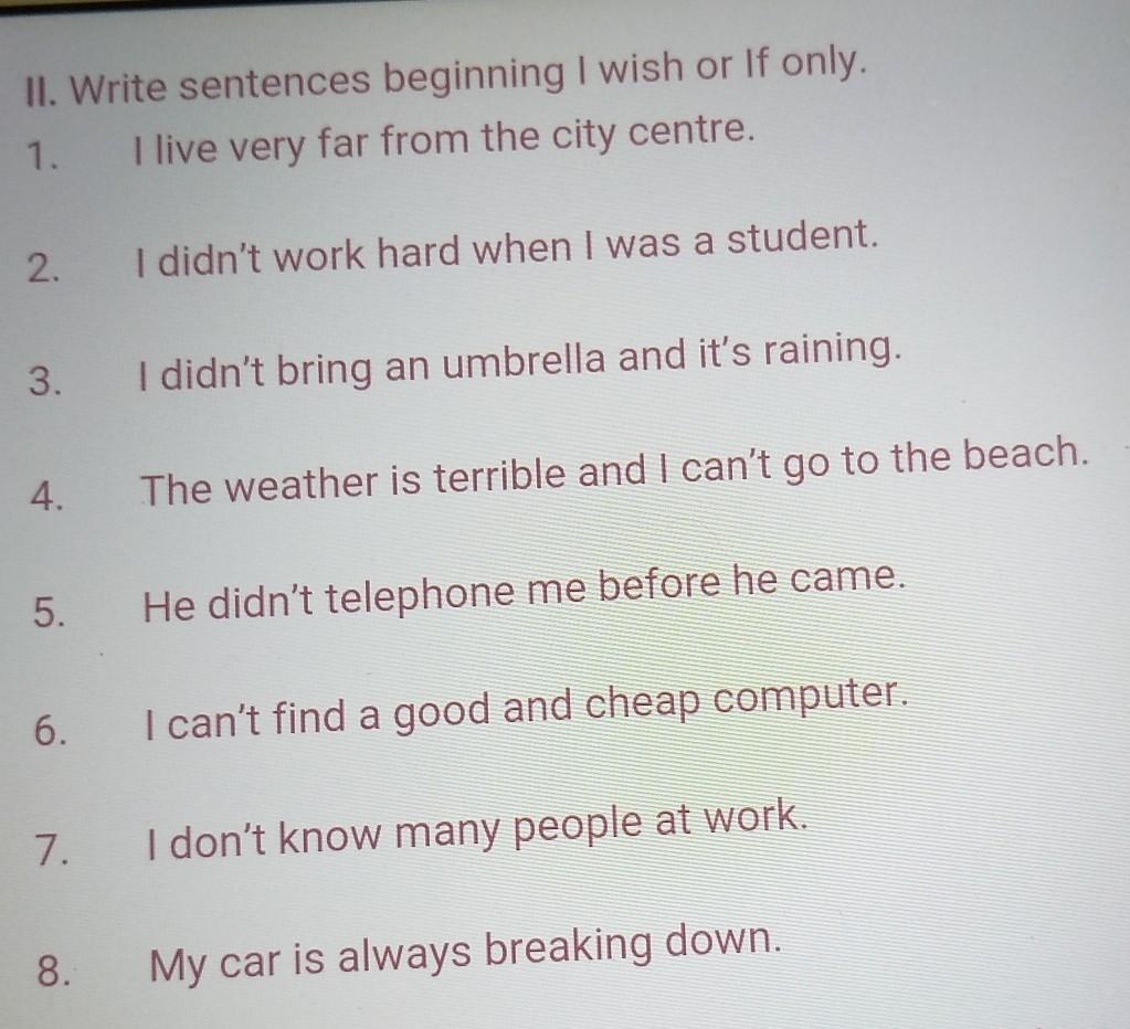 II. Write sentences beginning I wish or If only.