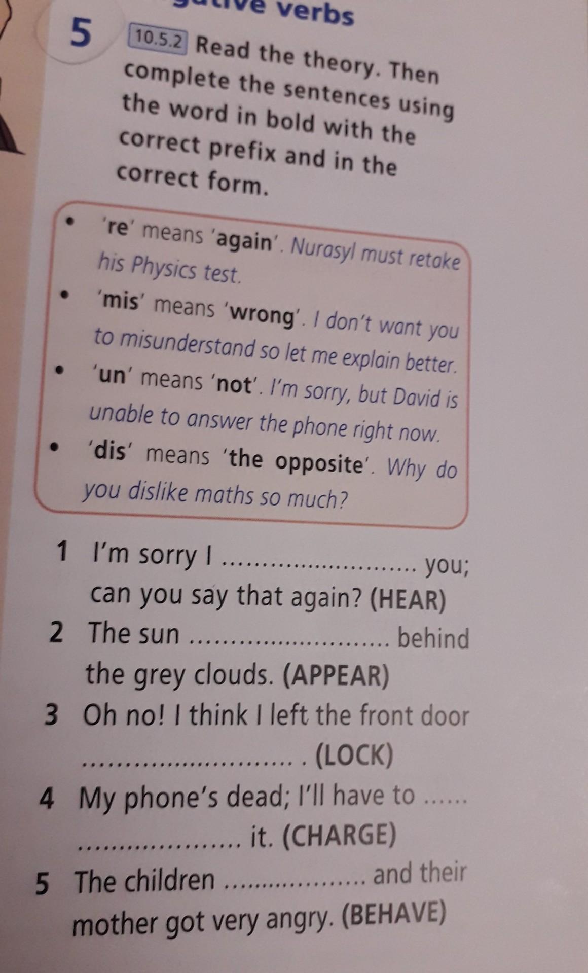 5. Read the theory. Then complete the sentences using the word in bold with the correct prefix and in the correct form.