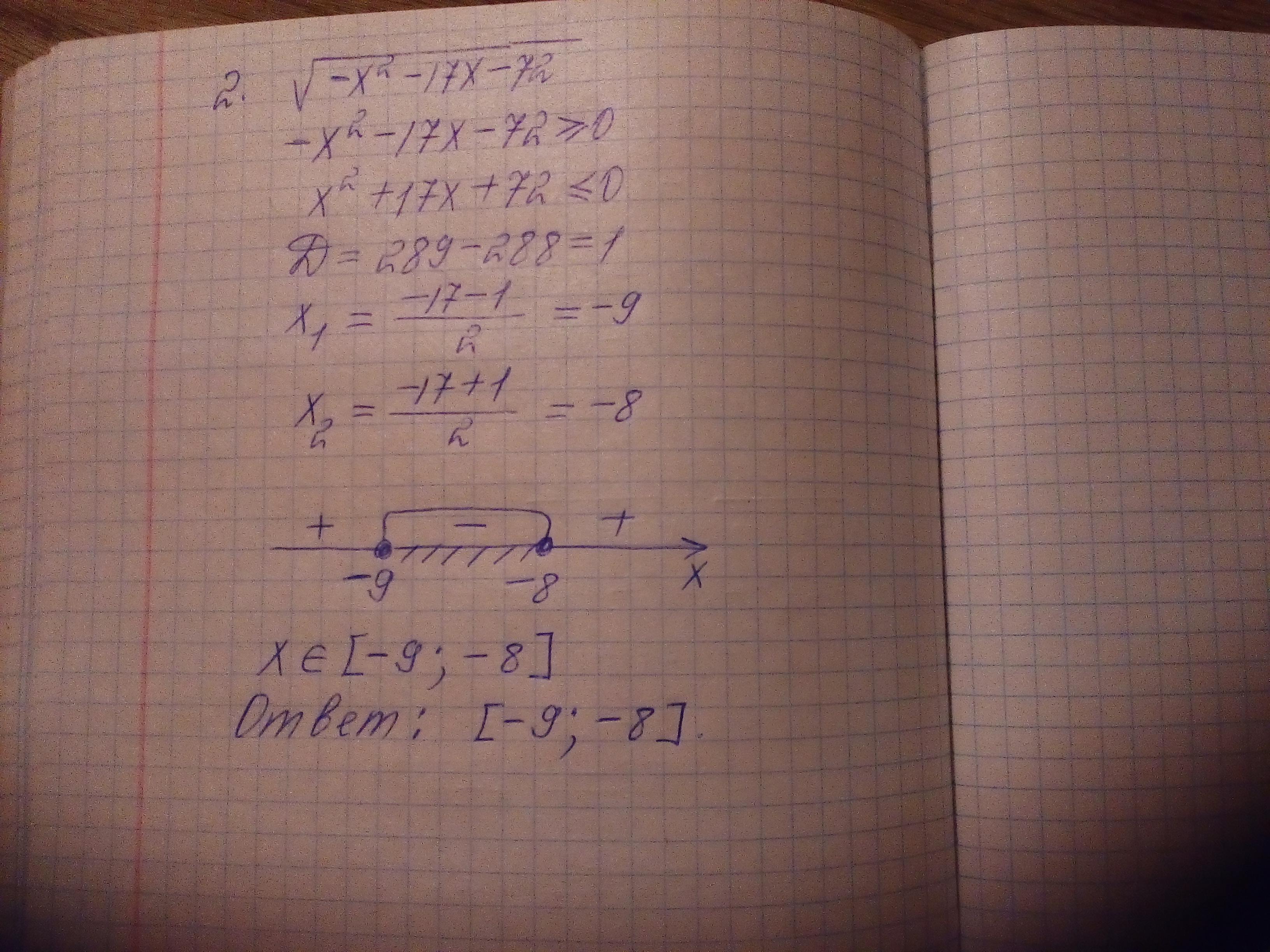 X1= (-b+корень D)/2=(-17+1)/2=-8