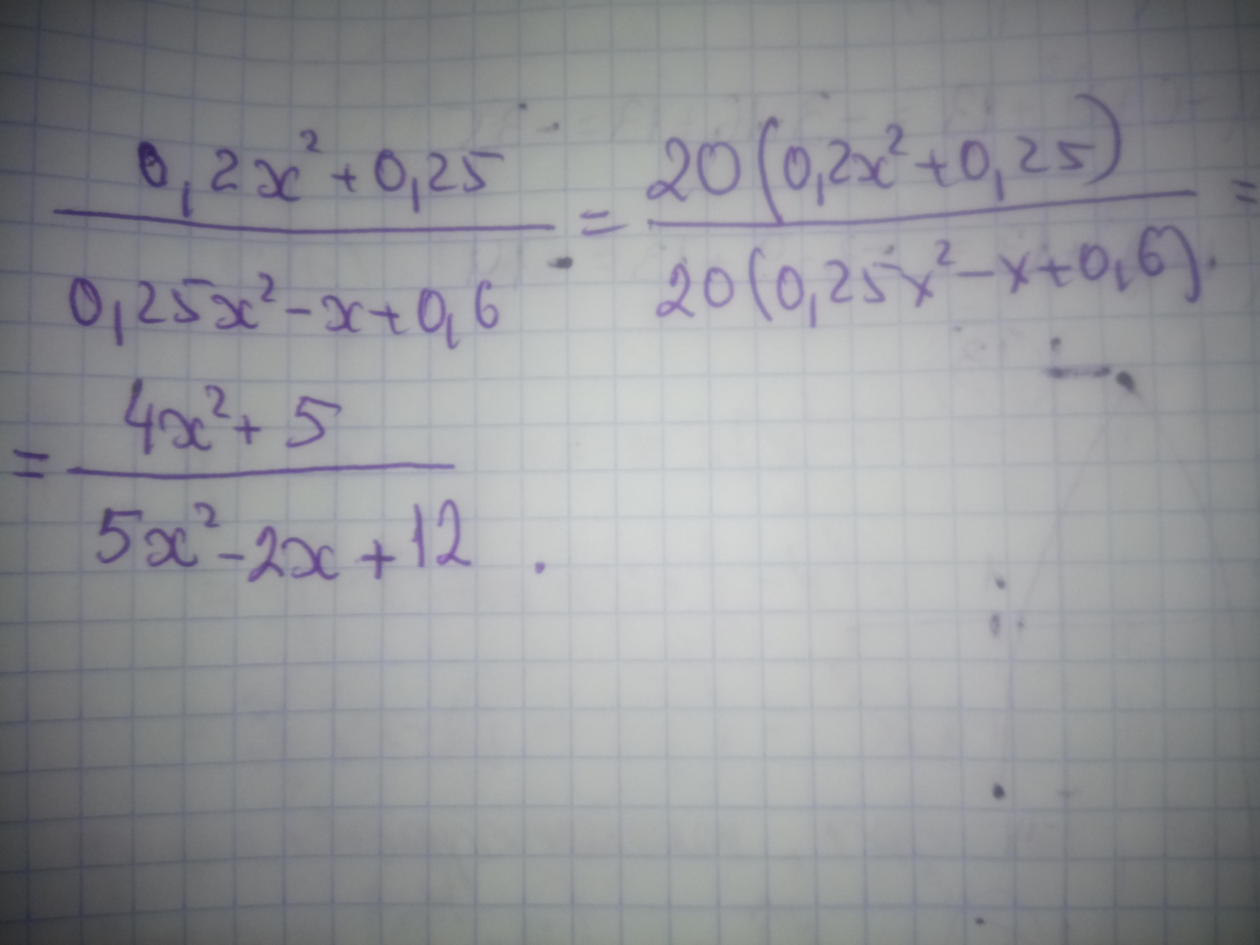 замените дробь 0,2х²+0,25/0,25х²-х+0,6 тождественно равной ей дробью, числитель и знаменатель которой являются многочлены с целыми коэффицентами