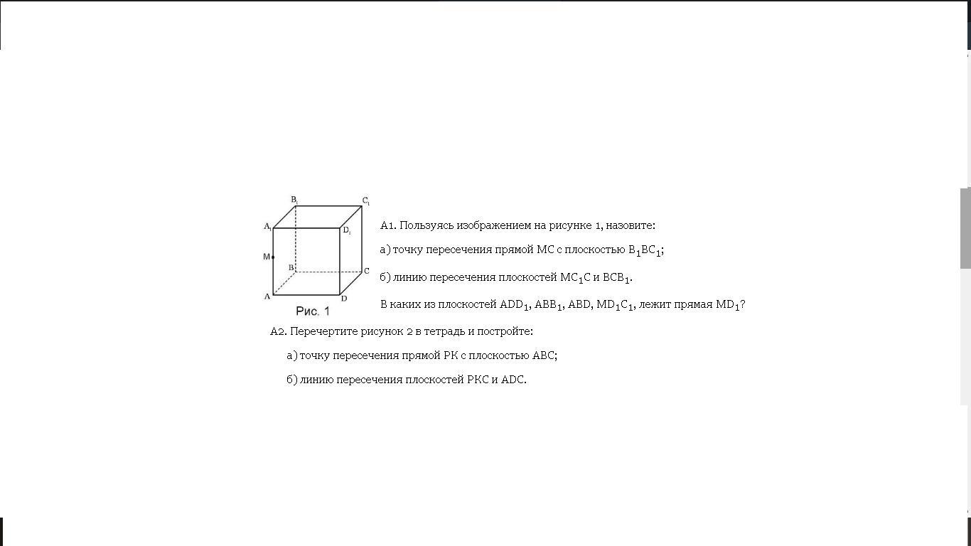 В каких из плоскостей ADD1, ABB1, ABD, MD1С1, лежит прямая MD1?