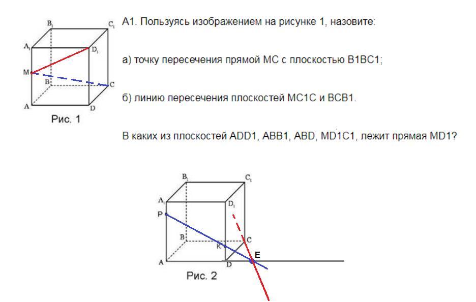 Точка Е лежит на прямых РК и AD, значит принадлежит двум плоскостям. Точка С принадлежит плоскости (РКС), это видно из названия, и плоскости (ADC). Значит ЕС - искомая прямая.