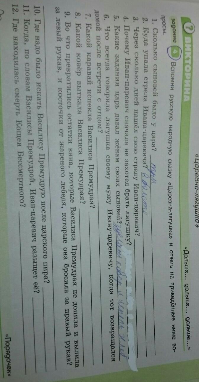 через 3 дня , потому что это лягушка, разные , ложись спать утро вечером мудренее , вкусный , красивый ,лебедей ,у кащея ,12) в яйце