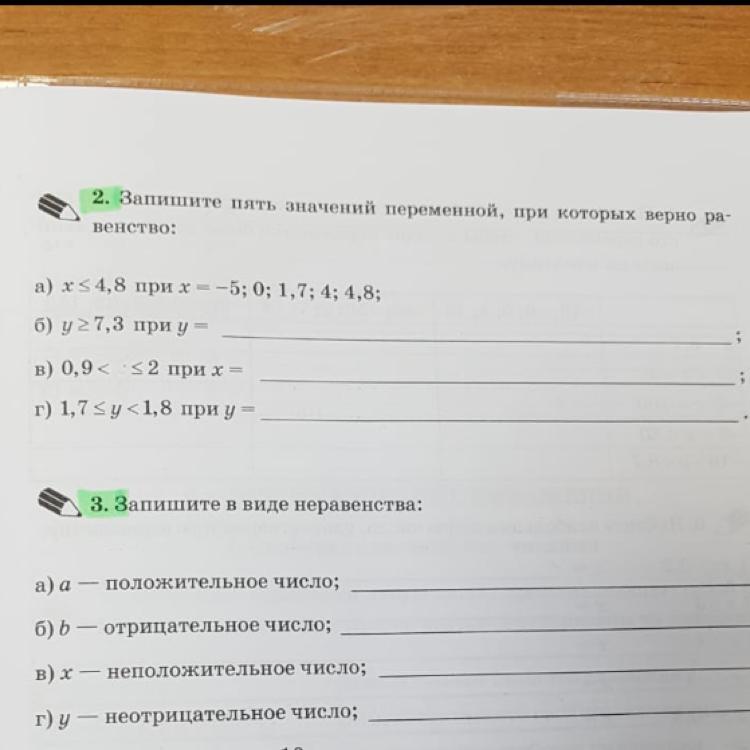 2) y≥7,3 : y=7,3 ; 8 ; 9 ; 10 ; 11,3 ; 100,5 .