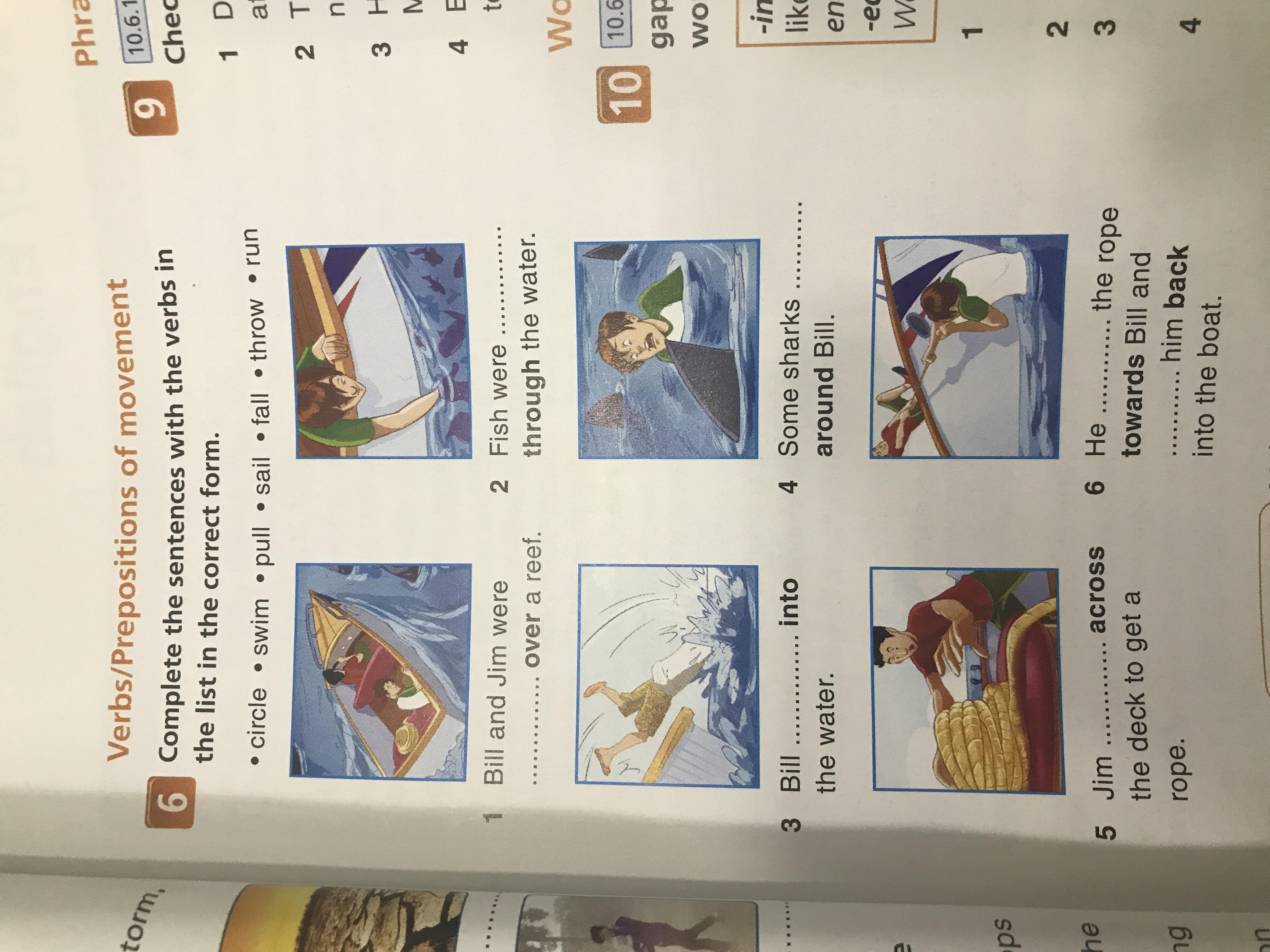 6 Не threw the rope towards Bill and pulled him back into the boat.