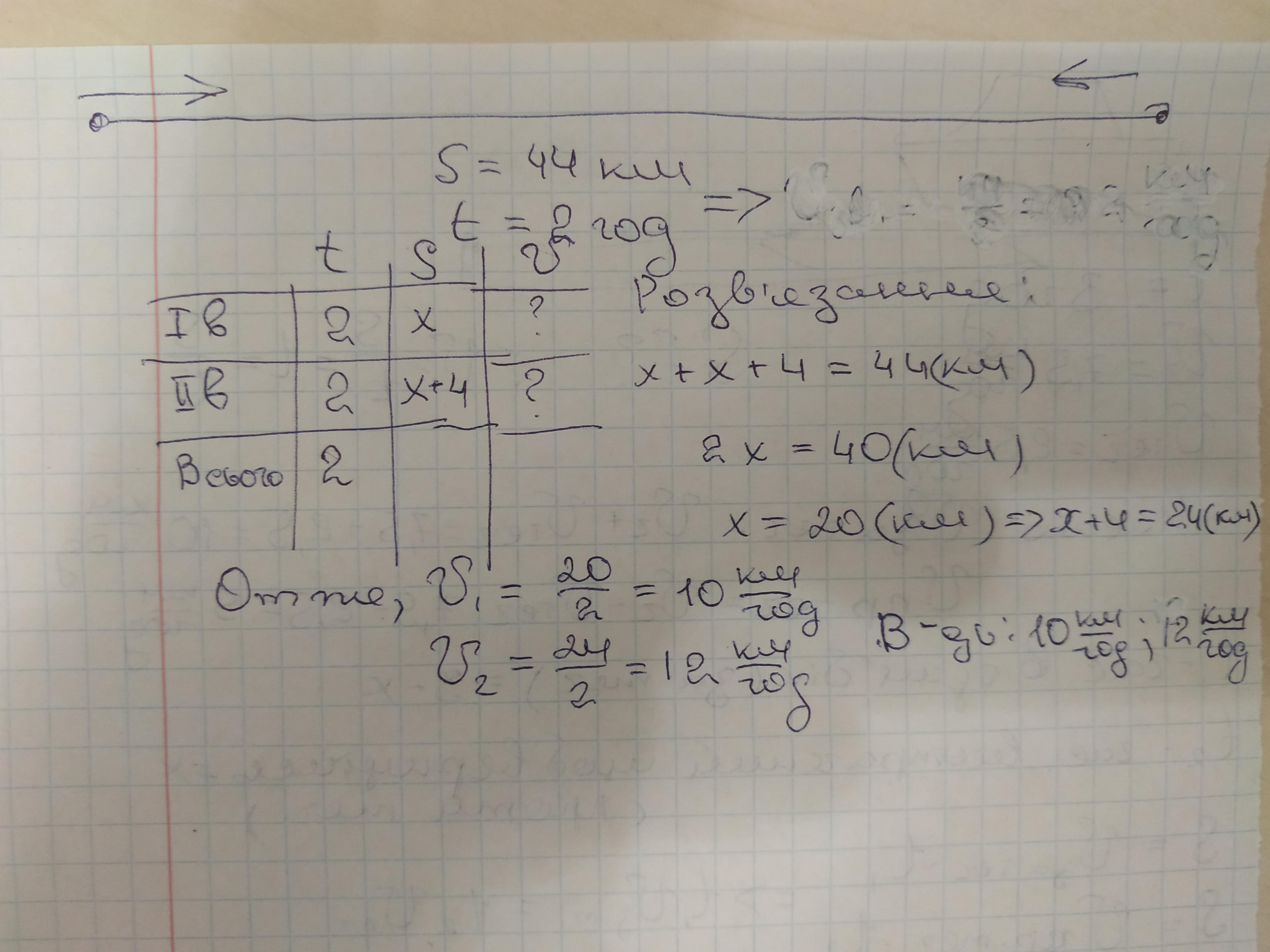 й зустрілися через 2 год. Знайди швидкість кожного вершника, якщо один з них