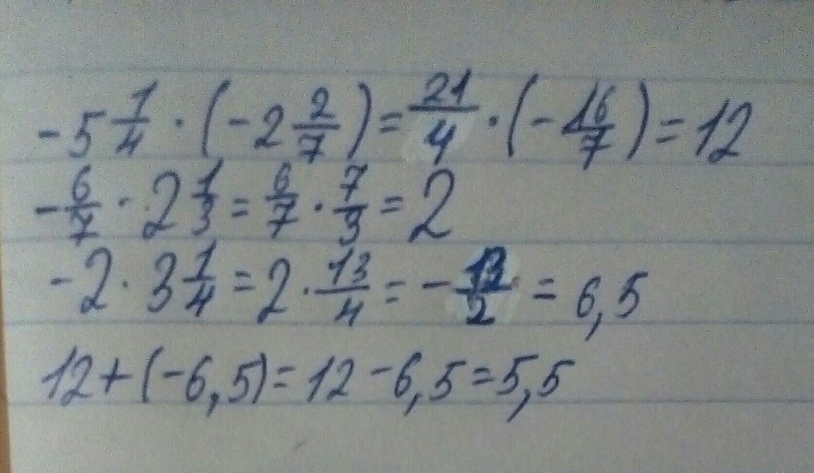 -5 1/4*(-2 2/7)=-21/4*(-16/7)=12