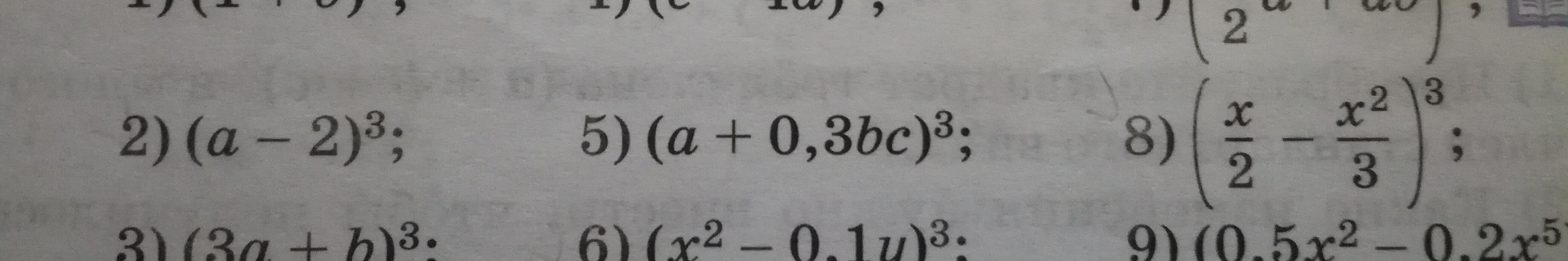 Помогите!!Очень срочно!Номера 2,5,8.Нужно привести к многочлену стандартного вида,по формуле куб суммы/разности!
