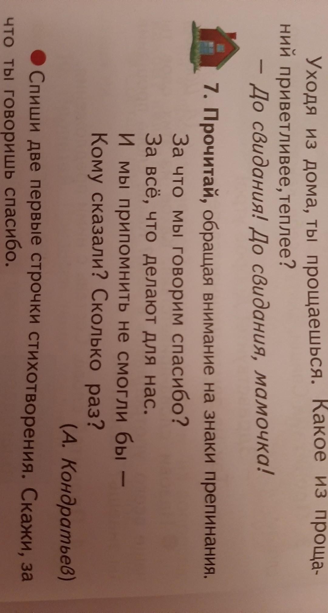 tı doljna sperva spisat pervıye dve stroçki. a potom tı doljna otveçat na vopros " za çto tı qovoriş spasibo?"