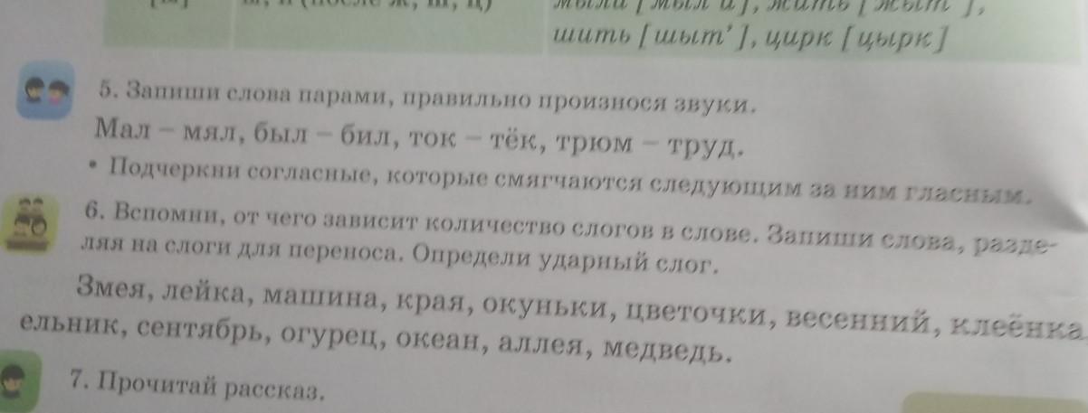ЗмеЯ, лЕй-ка, машИ-на (ма-шина), краЯ, окунь- кИ, цветОч-ки (цве-точки), весЕн-ний (ве-сенний), клеён-ка, Ель-ник, сен- тЯбрь, огу- рЕц, оке-Ан, ал-лЕя, мед-вЕдь.