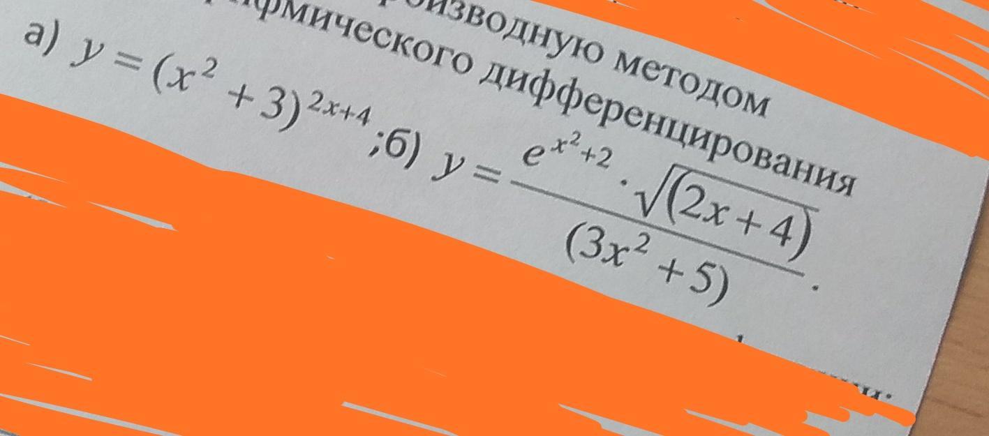 Вычислить производную методом логарифмического дифференцирования 1) y=(x^2+3)^2x+4