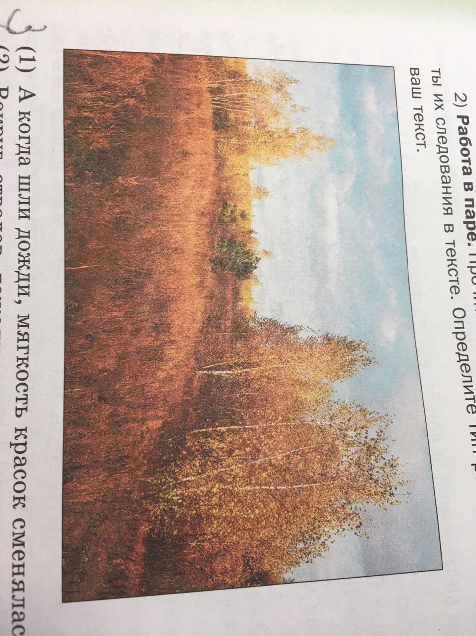 на картине я вижу: поля пшеницы. Чем ближе , чем она темнее. С право я вижу берёзы с жёлтыми листьями . скорее всего на картине осень . С лева я вижу берёзы которые слегка покачиваются. В дали виднеются зелёные кусты. Небо голубое , почти всё покрыто облаками .