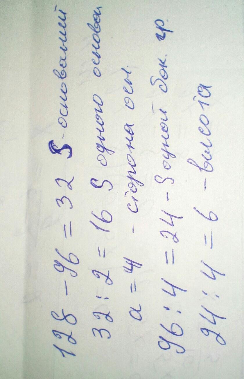 Площа бічної поверхні правильної чотирикутної призми дорівнює 96 см^2 ,а площа повної поверхні 128см^2. Знайти висоту призми