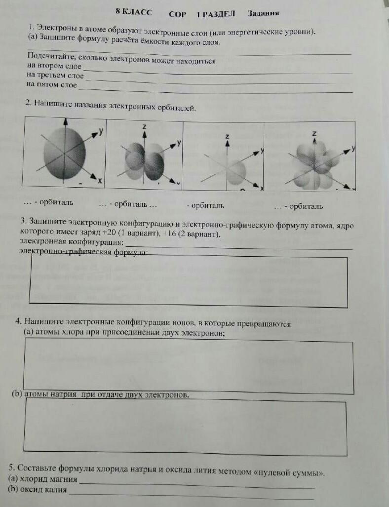 2. Напишите названия электронных орбиталей.