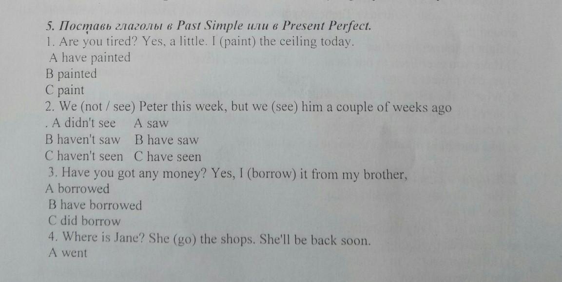 1.have painted2.haven't seen.3.have borrowed.4.went