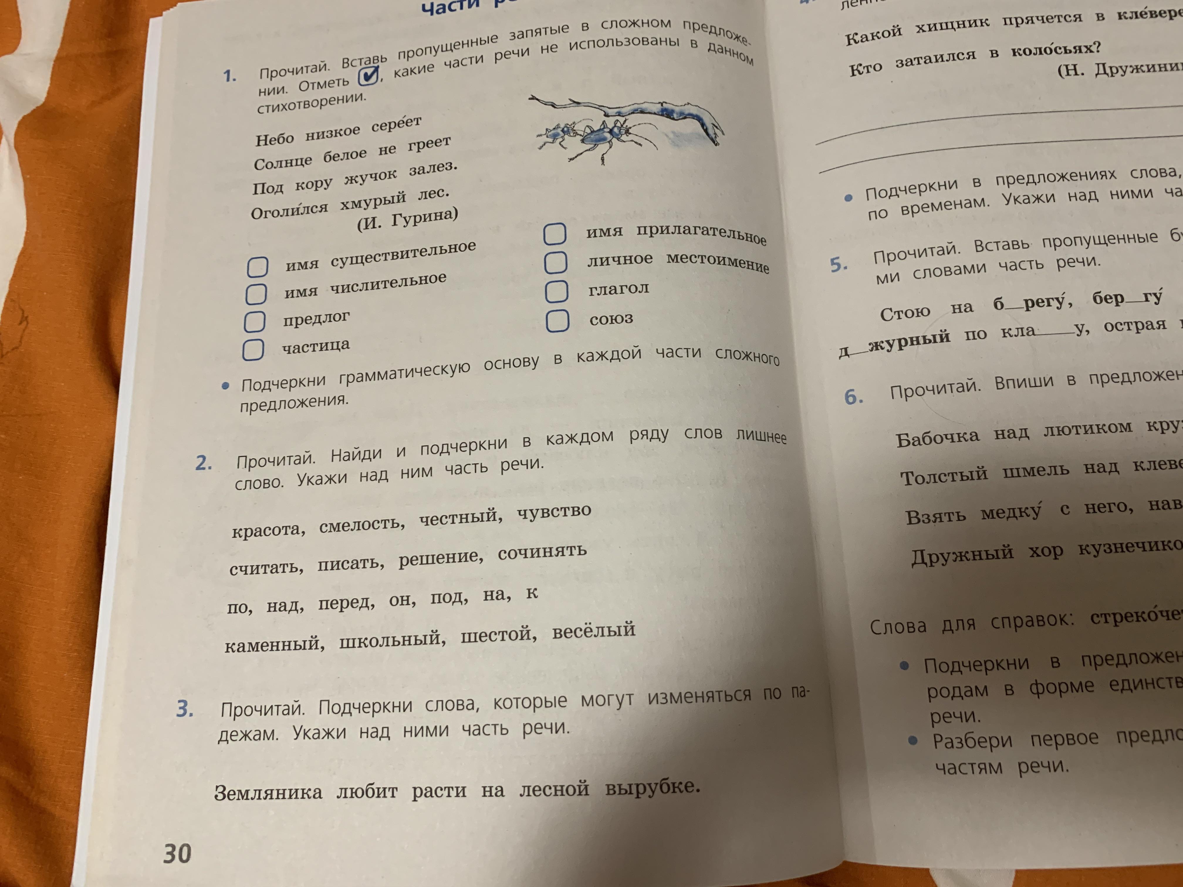 Под(предлог) кору(сущ) жучок(сущ) залез(глагол).