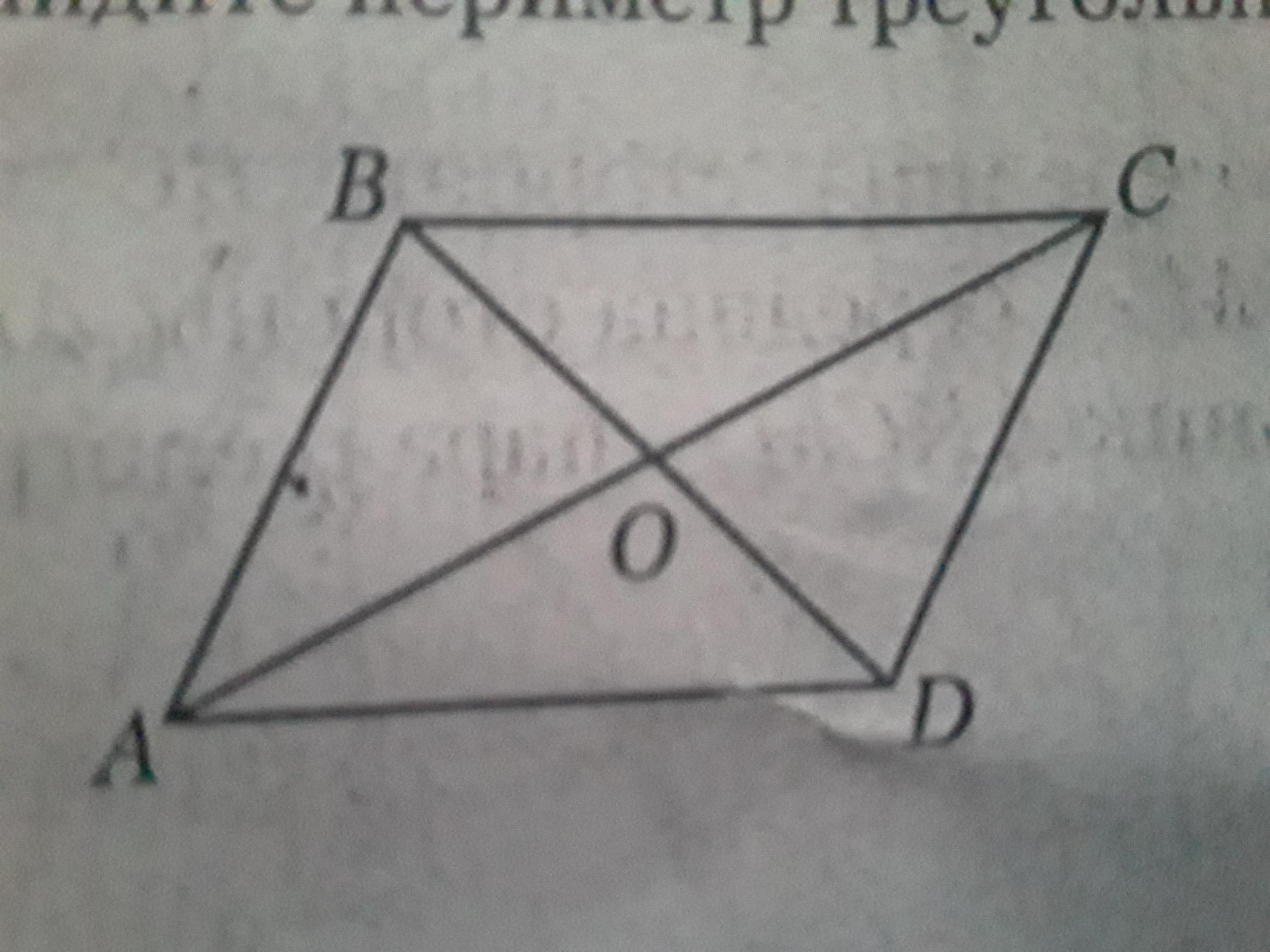 На рисунке диоганали параллелограмма ABCD пересекаються в точке O.AC=14см,BD=12см,сторона AD равна 8 см. Найдите периметр треугольника BOC.