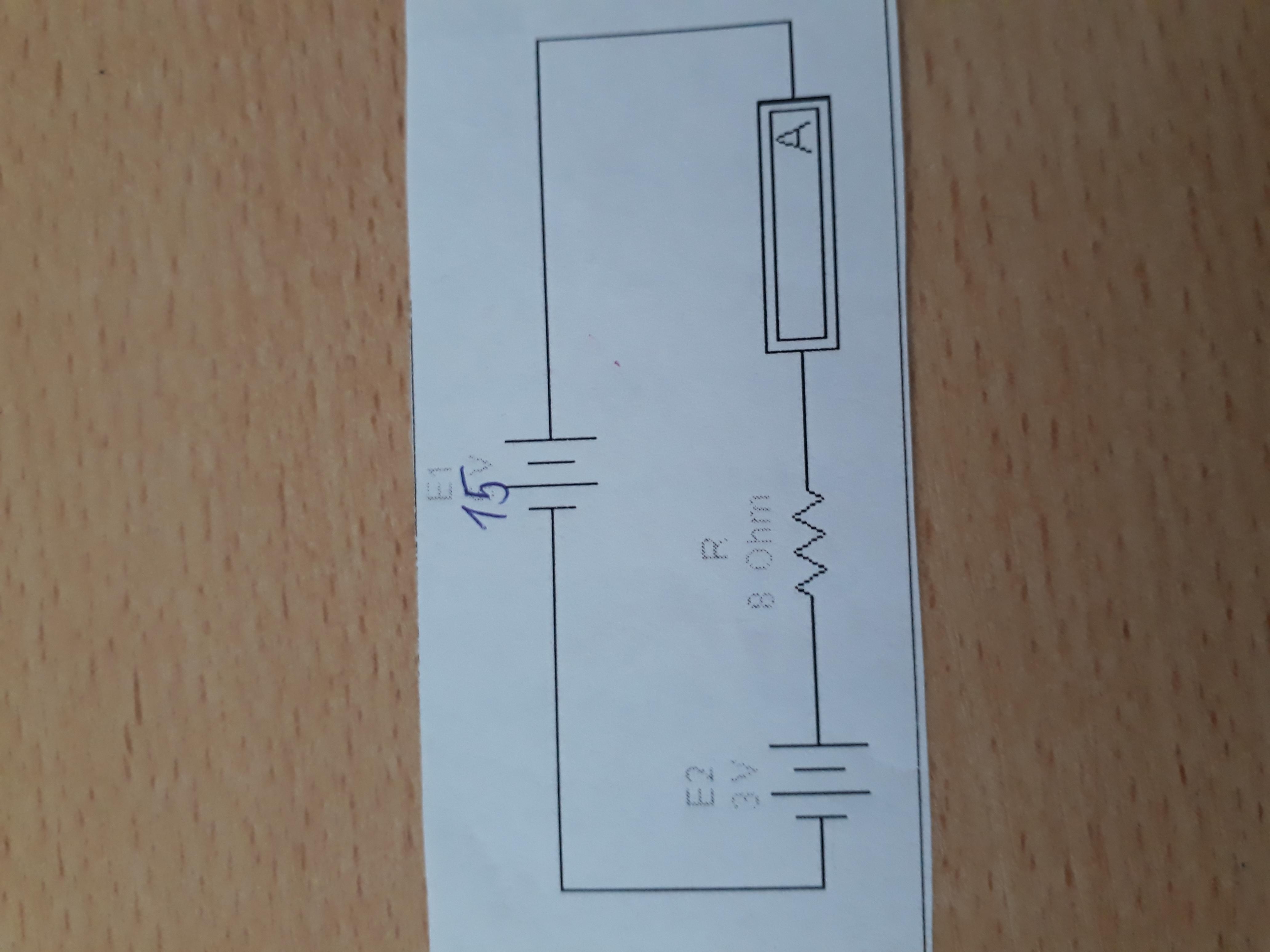 I = (E1 - E2) / R = (15 - 3) / 8 = 1,5 A