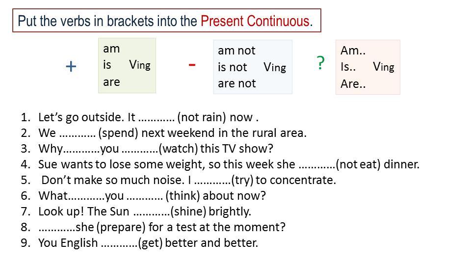 Put the verbs in brackets into the Present Continuous.