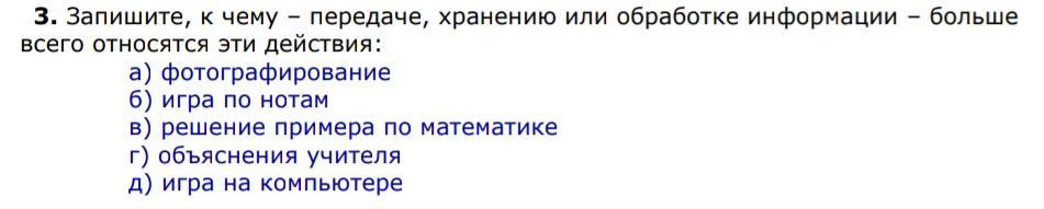 Запишите , к чему - передаче , хранению или обработке информации - больше всего относятся