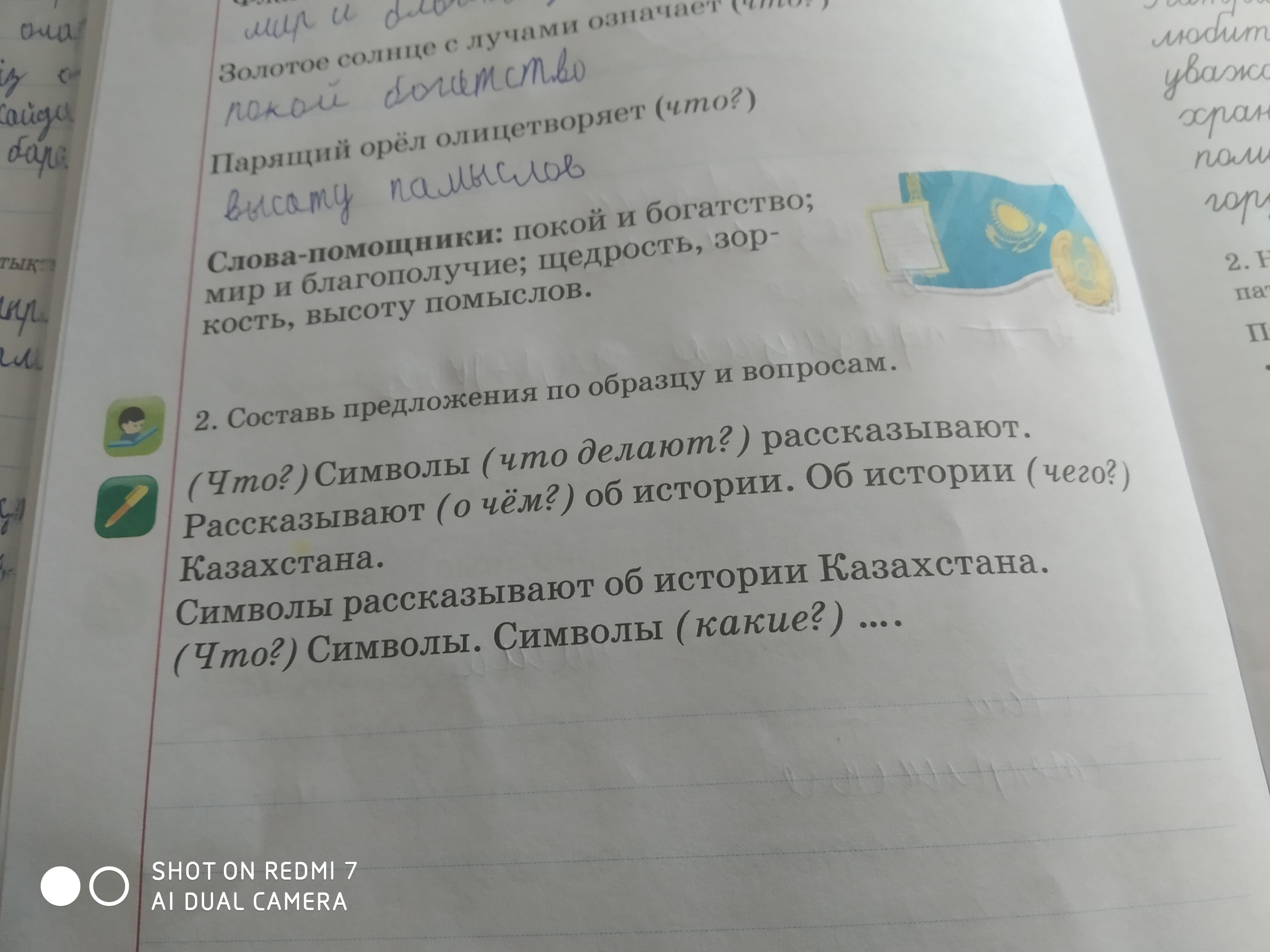 Ответ:(Что?) Символы (какие?) нужные (для чего?) для рассказа (о чем?) о Казахстане