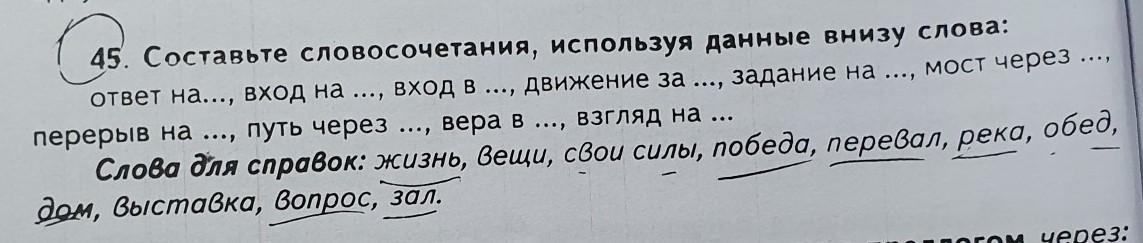 Ответ на вопрос, вход на выставку, вход в зал, движение за жизнью, задание на дом, мост через реку, перерыв на обед, путь через перевал, вера в победу, взгляд на вещи
