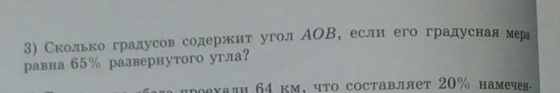 Если угол АОВ =65%, то угол АОВ=180°×65%=180°×0,65=117°