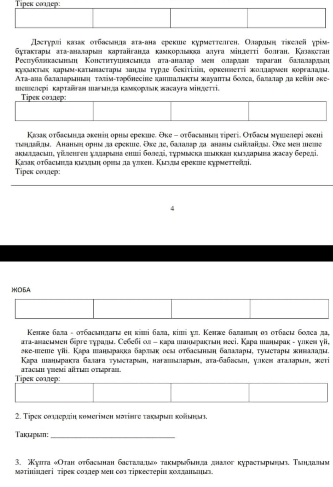 Кенже бала, қара шаңырақ, ата баба, туыстары жиналады. Из этих слов нужно составить заголовок для текста.