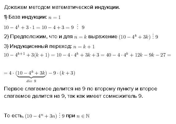 Доказать, что при любом натуральном n число 10-(4^n)+3n делится на 9.