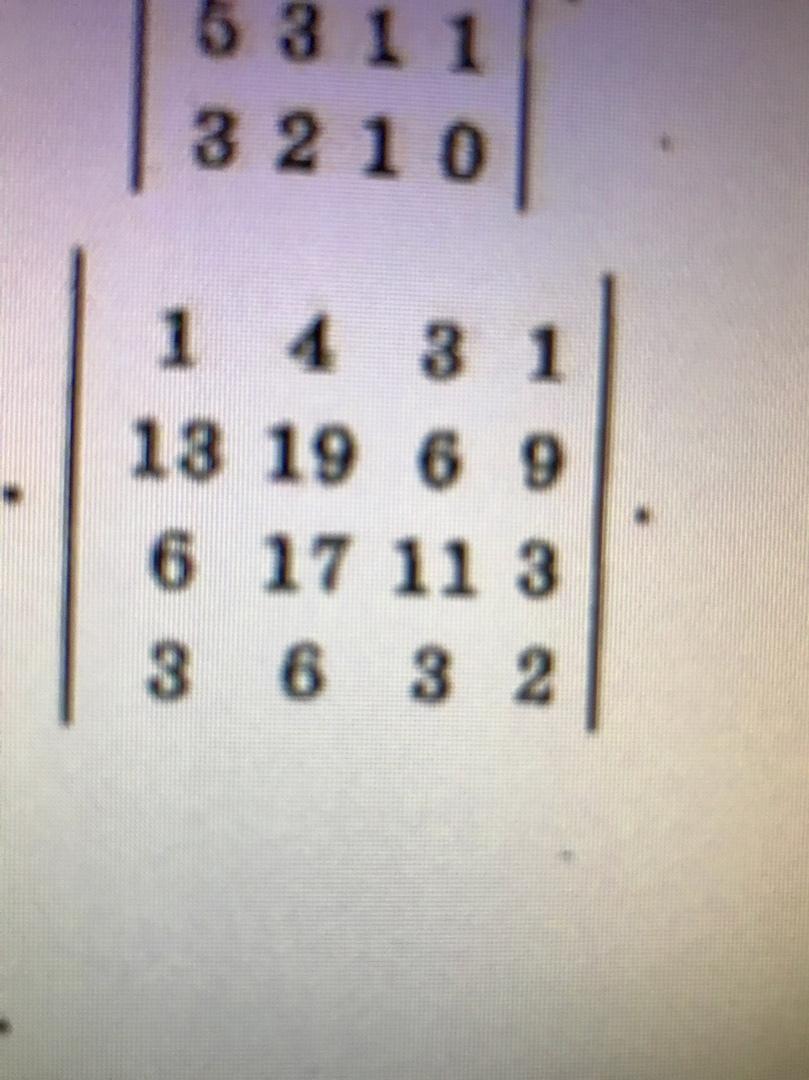 Для вычисления определителя приведем матрицу к верхнетреугольному виду, используя элементарные преобразования над строками матрицы и свойства определителя матрицы.