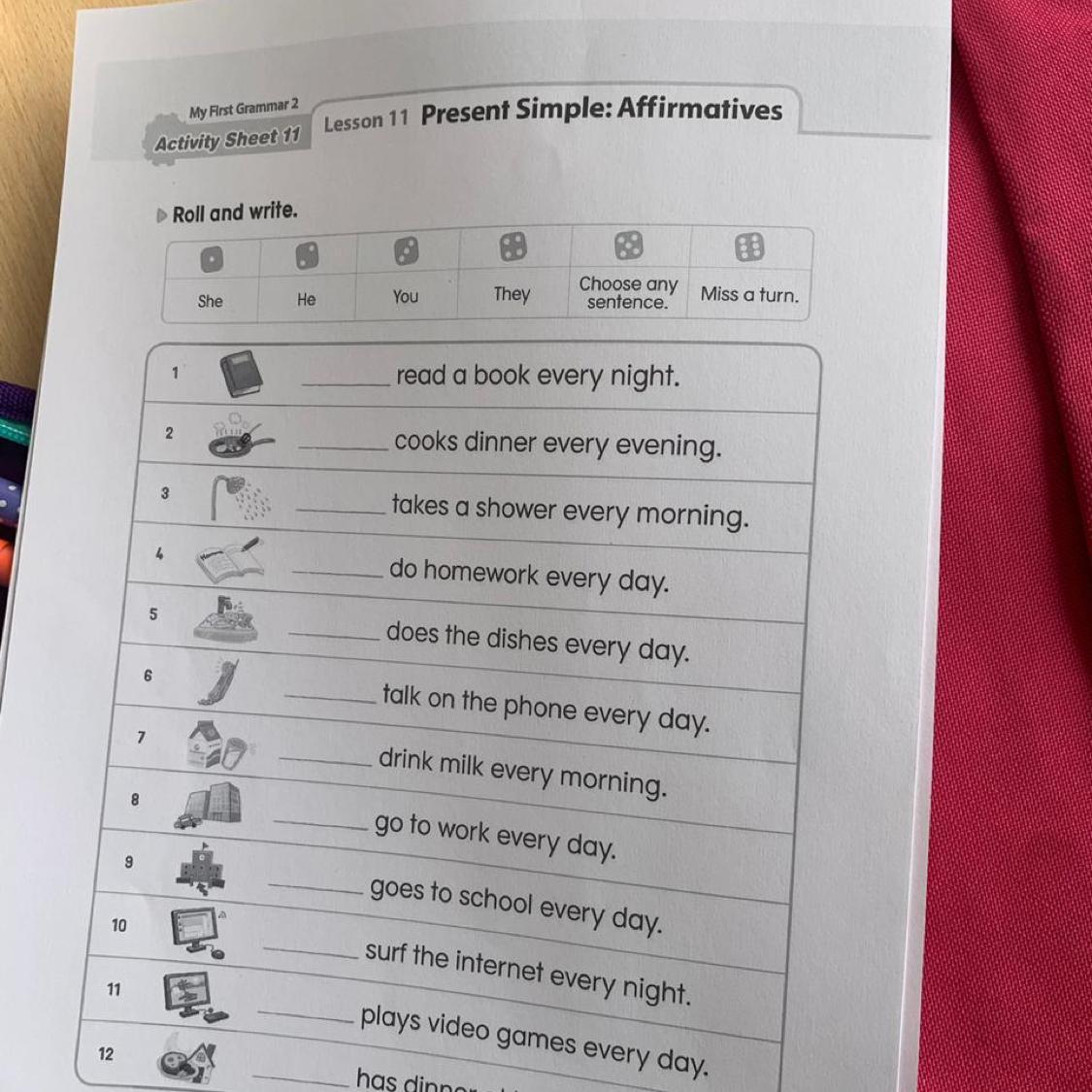 Activity Sheet 11 Lesson 11 Present Simple: Affirmatives