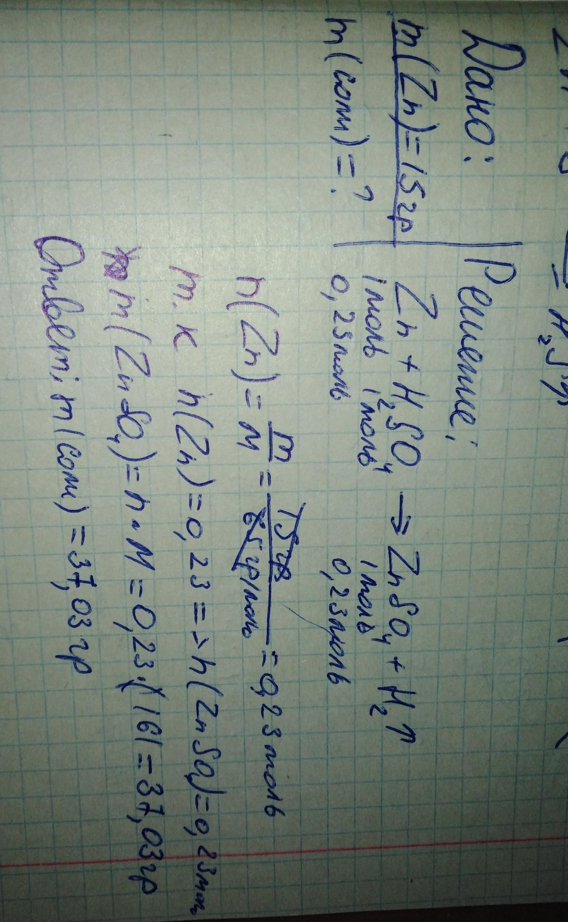 Задача: к 15 граммам цинка прилили раствор серной кислоты. Какая масса соли образовалась? даю 15 баллов