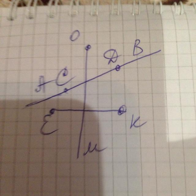 дежа на прямой AB, aлyч Ом пересекал