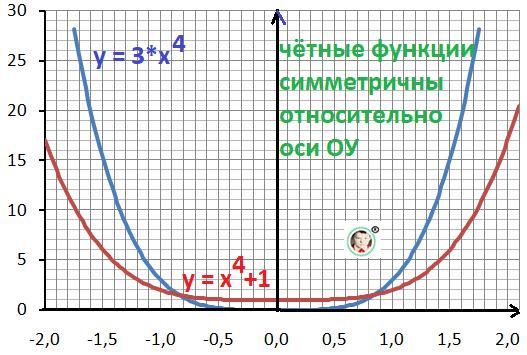 1) y(-x) = 3*(-x)⁴ = 3*x⁴ = y(x) - чётная -ответ