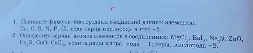 2) Mg(+2)Cl(-), Ba(+2)I(-), Na(+)S(-2), Zn(+2)O(-2), Cu(+)O(-2), Cu(+2)O(-2), Ca(+2)Cl(-)