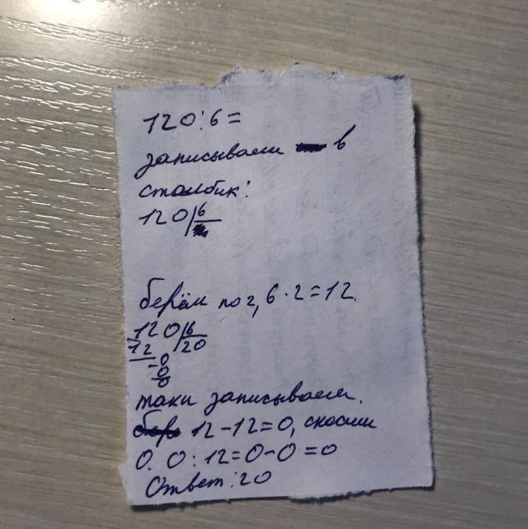 Например возьмём числа 120:6,