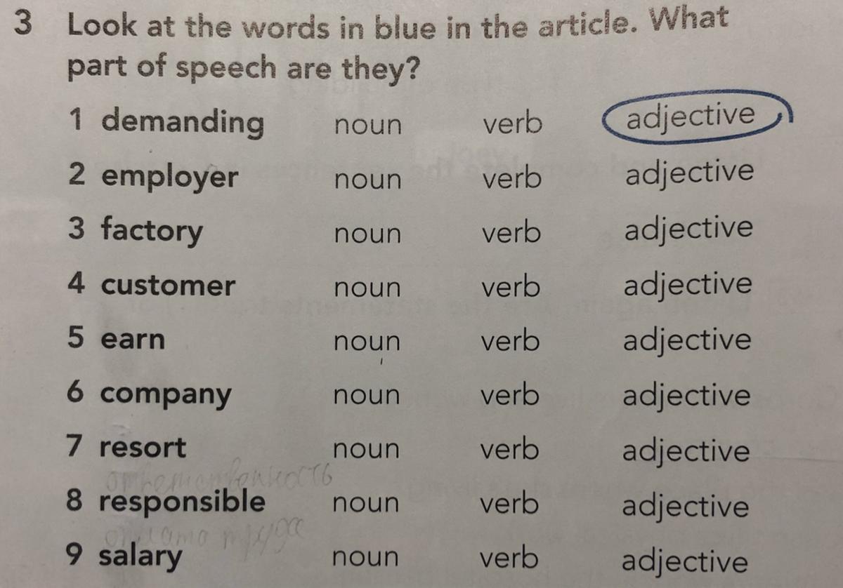 Look at the words in blue in the article. What part of speech are they?