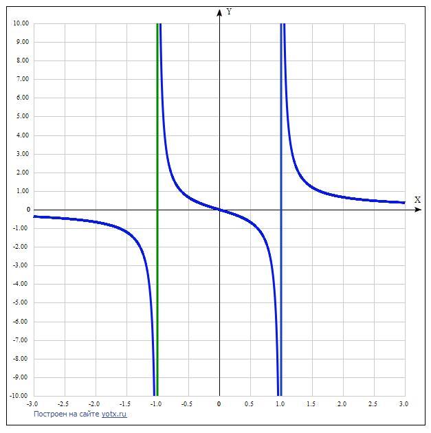 1. Разложим знаменатель на множители: y=x/((x-1)(x+1)).