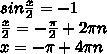 Ответ: sin (x/2)=-1⇒x/2=1,5*π+2*π*N ⇒x=3*π+4*π*N, здесь N- целое число.