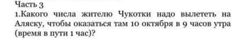 Если на Аляске 10 число 9 утра, то на Чукотке в это время 11 число 5 утра (разница 20 часов)