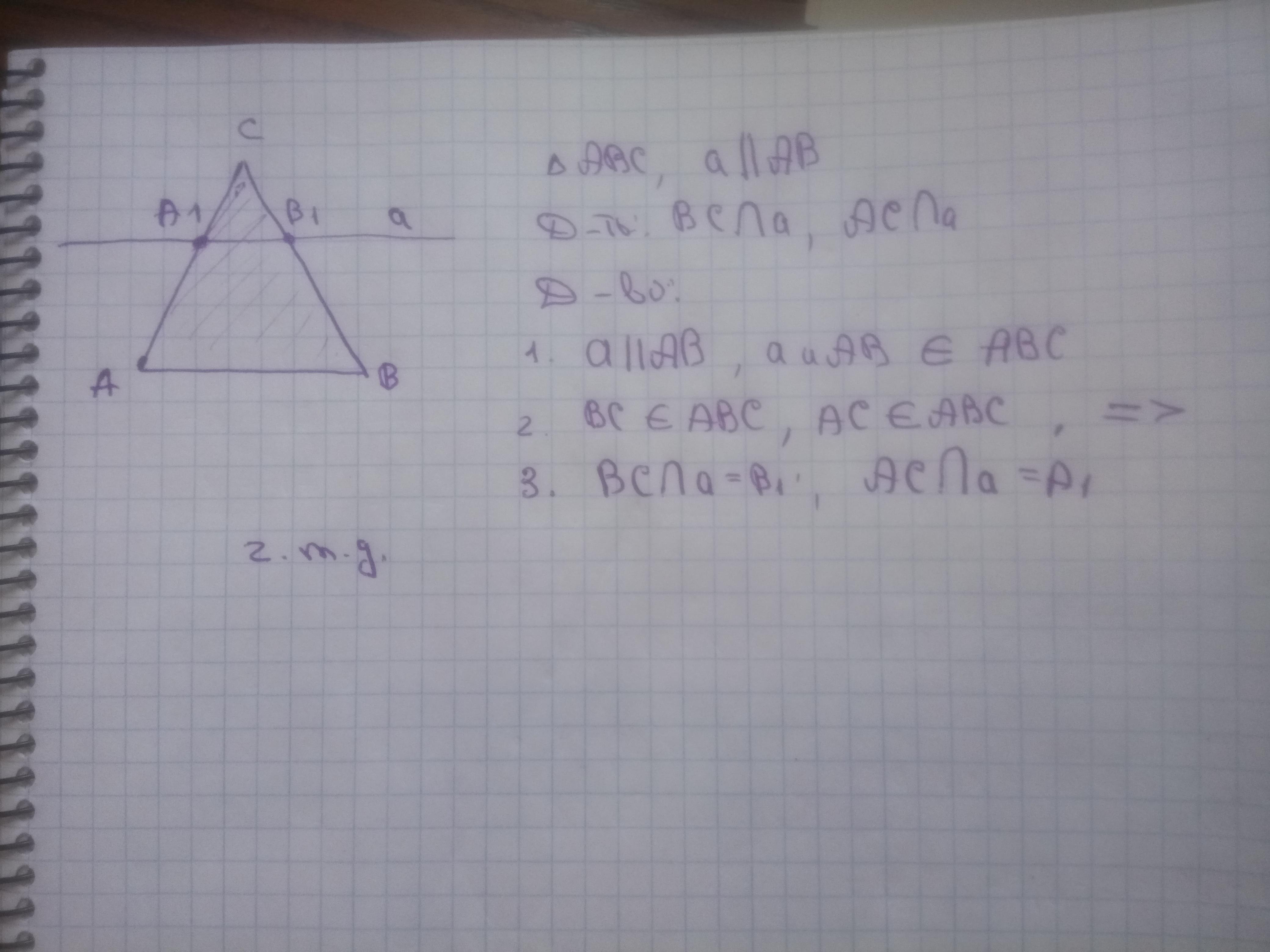 прямая а параллельна стороне АВ треуголььника АВС докажите что прямые ВС и АС пересекают прямую а
