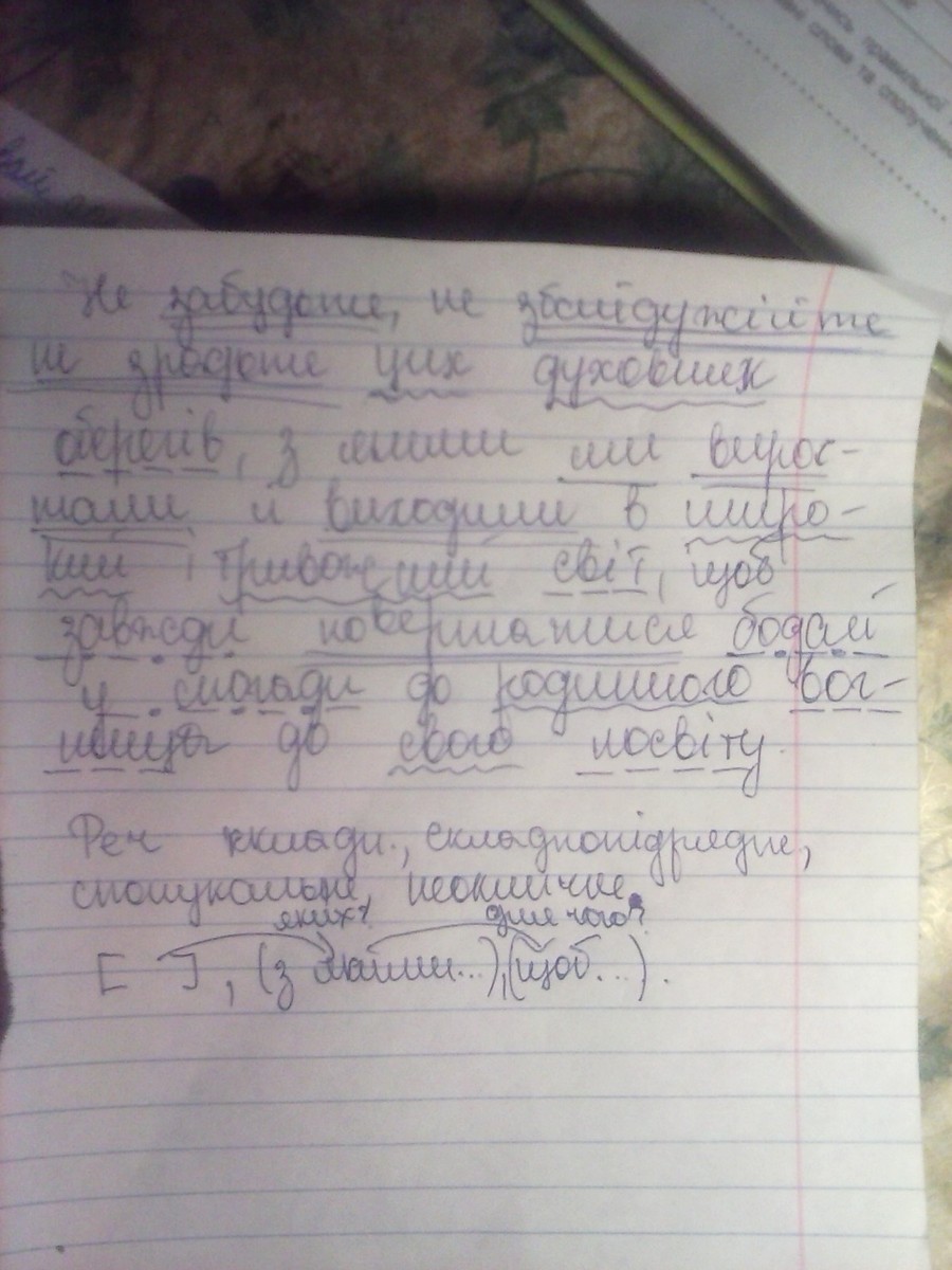 Записати речення, розставити розділові знаки, побудувати його структурну схему, зробити синтаксичний розбір речення: Не забудьте не збайдужійте не зрадьте цих духовних оберегів з якими ми виростали й виходили в широкий і тривожний світ щоб завжди повертатися бодай у спогадах до родинного вогнища до свого посвіту.