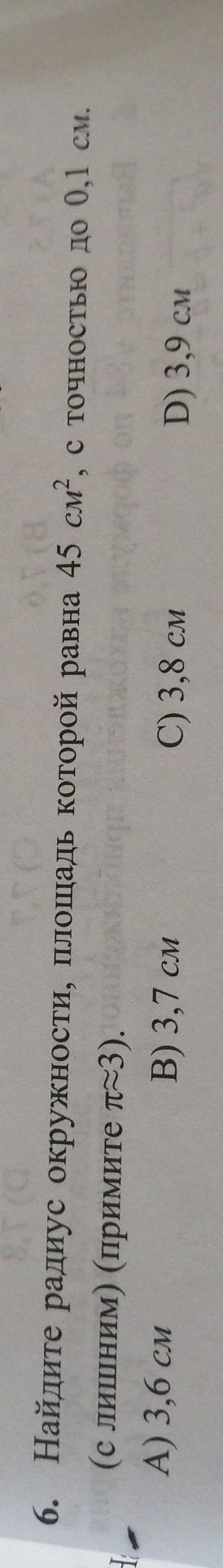 Площадь круга Pi*R^2, так как Пи равно 3 то 45 делим на 3 = 15, и извлекаем квадратный корень из 15 получаем - 3,872983, при округлении получаем 3,9