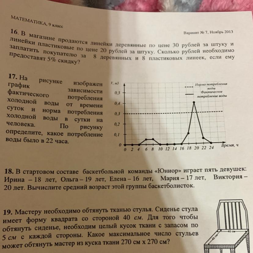 17) Потребление воды в 22 часа, составило 0.05 м^3