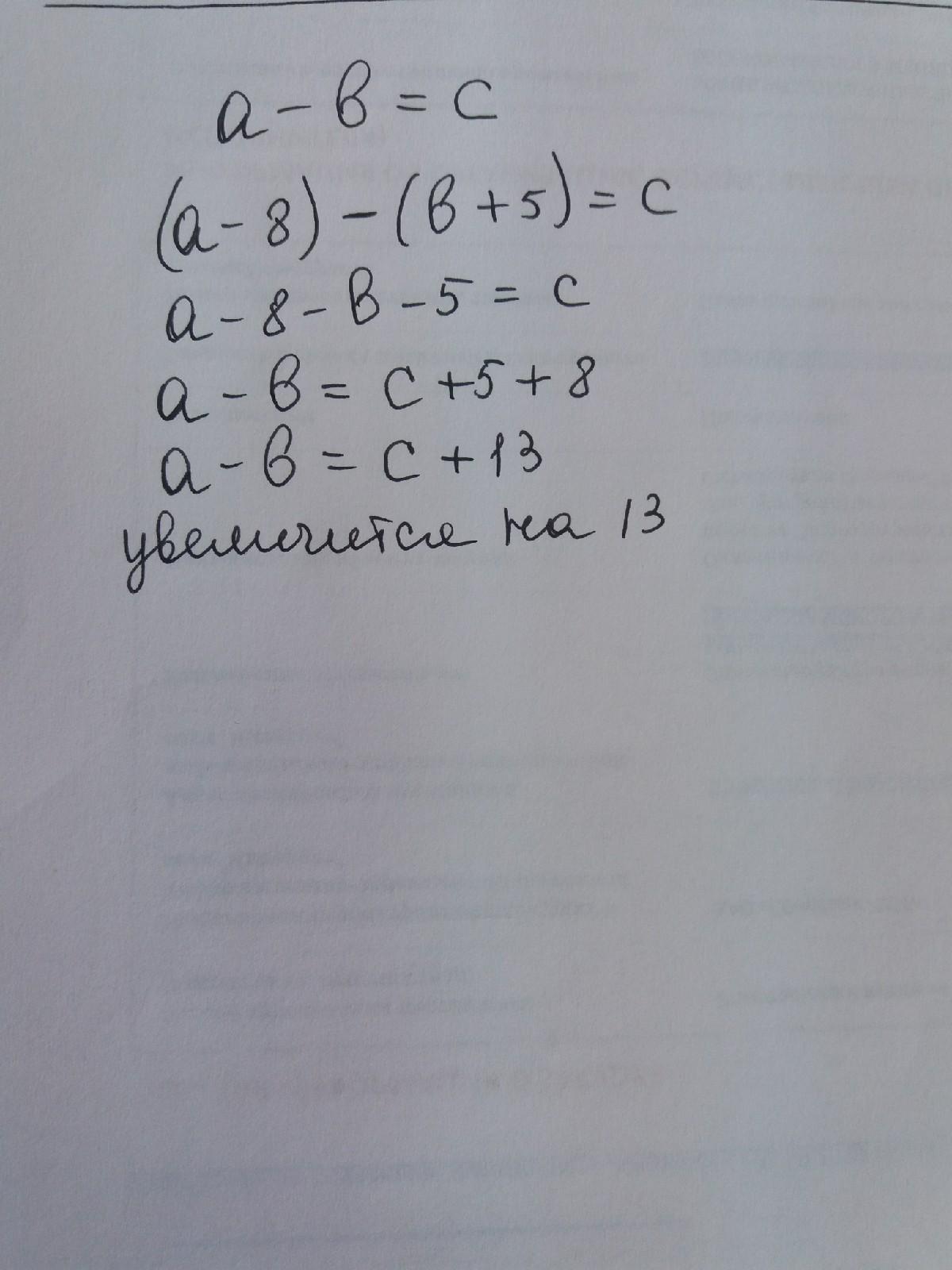 Как изменится разность, если уменьшаемое уменьшить на 8, а вычитаемое увеличить на 5?
